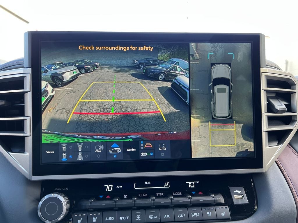 44. The Panoramic View Monitor does not provide a comprehensive view of the area surrounding your vehicle. Look around to confirm clearance. See Owner’s Manual for limitations.