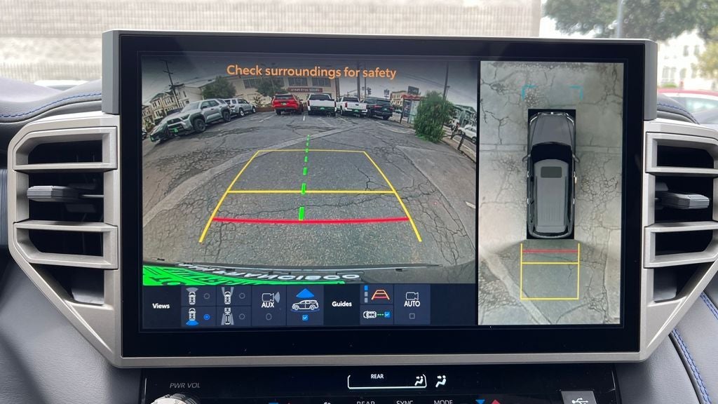 44. The Panoramic View Monitor does not provide a comprehensive view of the area surrounding your vehicle. Look around to confirm clearance. See Owner’s Manual for limitations.