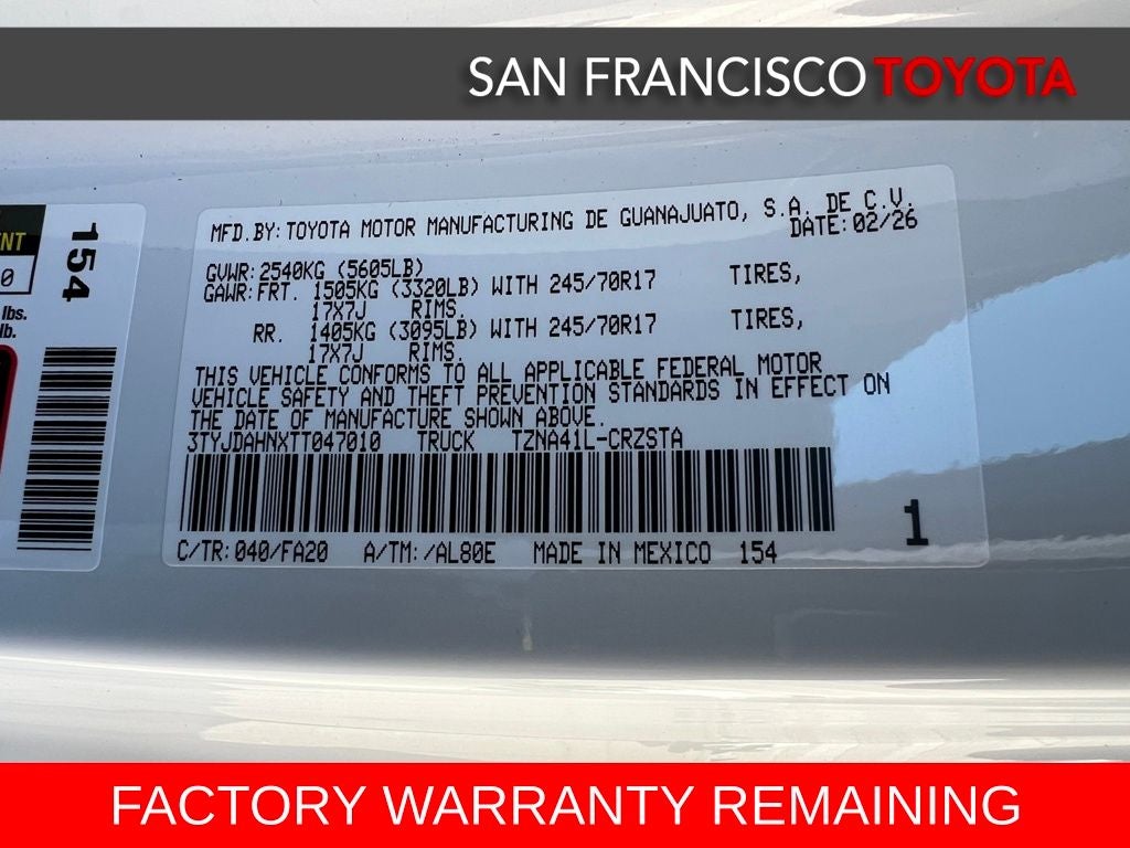 Don't miss the opportunity to make this 2026 Toyota Tacoma SR your own. Schedule a test drive today and experience the perfect blend of capability, comfort, and confidence that this truck has to offer.